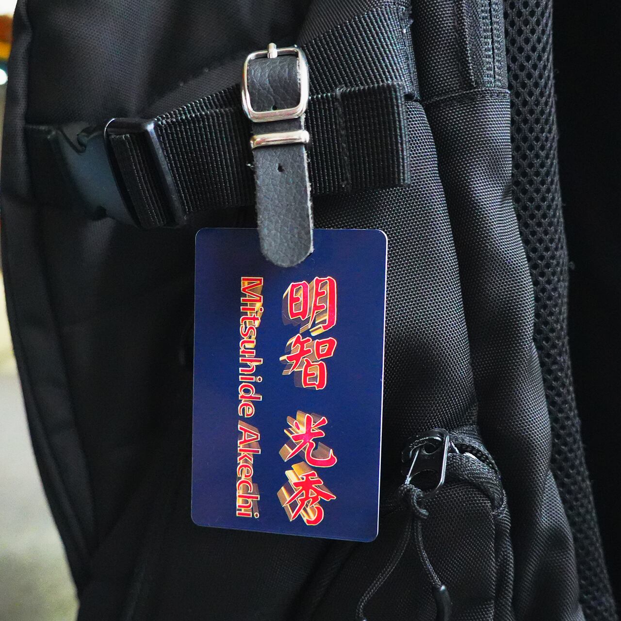 ◆『ネームタグ / 金縁3D / red / 縦型 / ベルトタイプ』