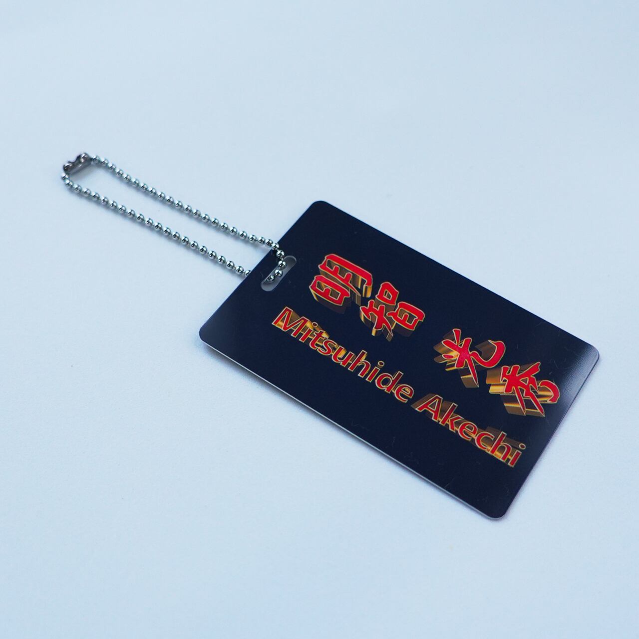 ◆レタッチソフトで金縁3D(red)風に仕上げた文字(書体データ)をプラスチックカードに印字するネームタグです