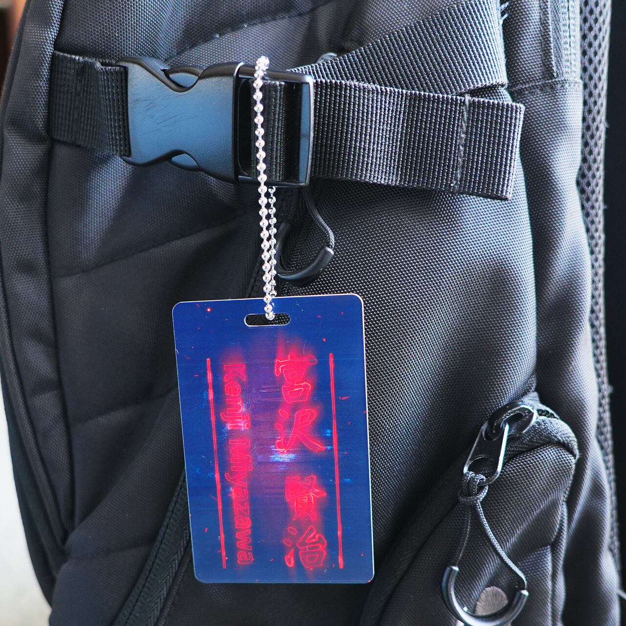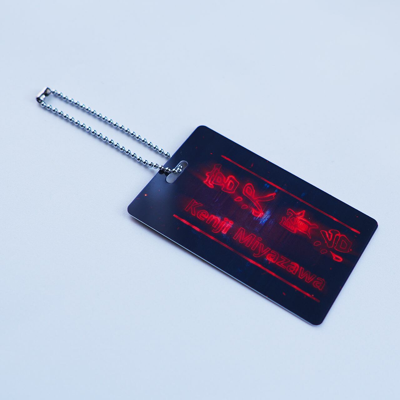 ◆レタッチソフトでGhost(red)風に仕上げた文字(書体データ)をプラスチックカードに印字するネームタグです