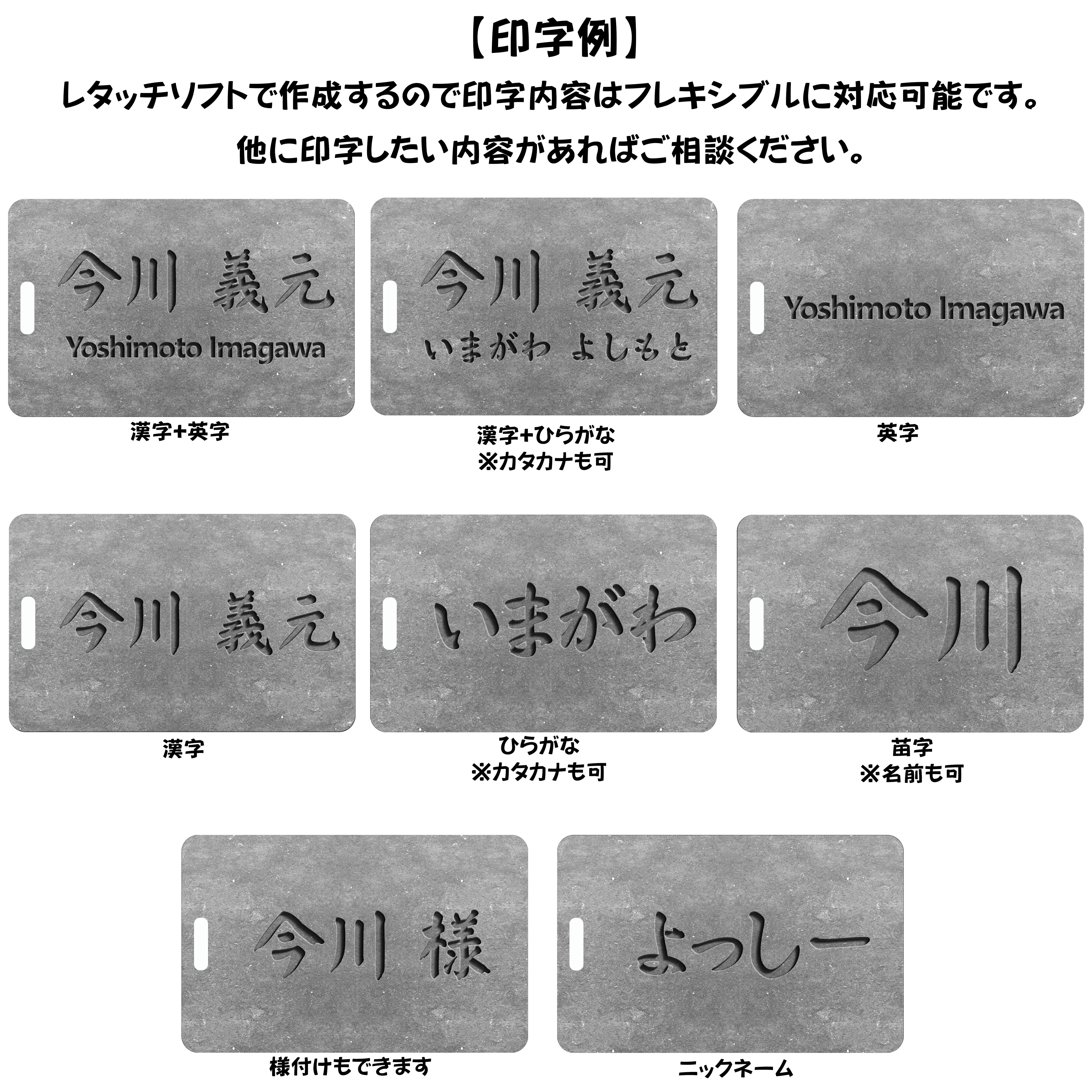 ◆レタッチソフトで石目刻印風に仕上げた文字(書体データ)をプラスチックカードに印字するネームタグです